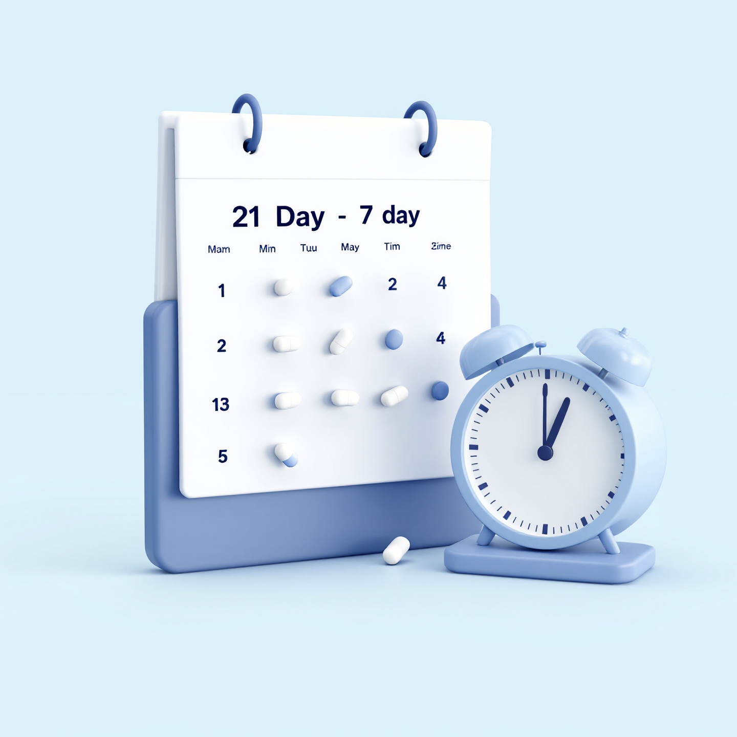 - 새 팩 시작: 7일의 휴약기가 끝나면, 생리 종료 여부와 상관없이 8일째 되는 날 새로운 팩의 복용을 시작합니다.