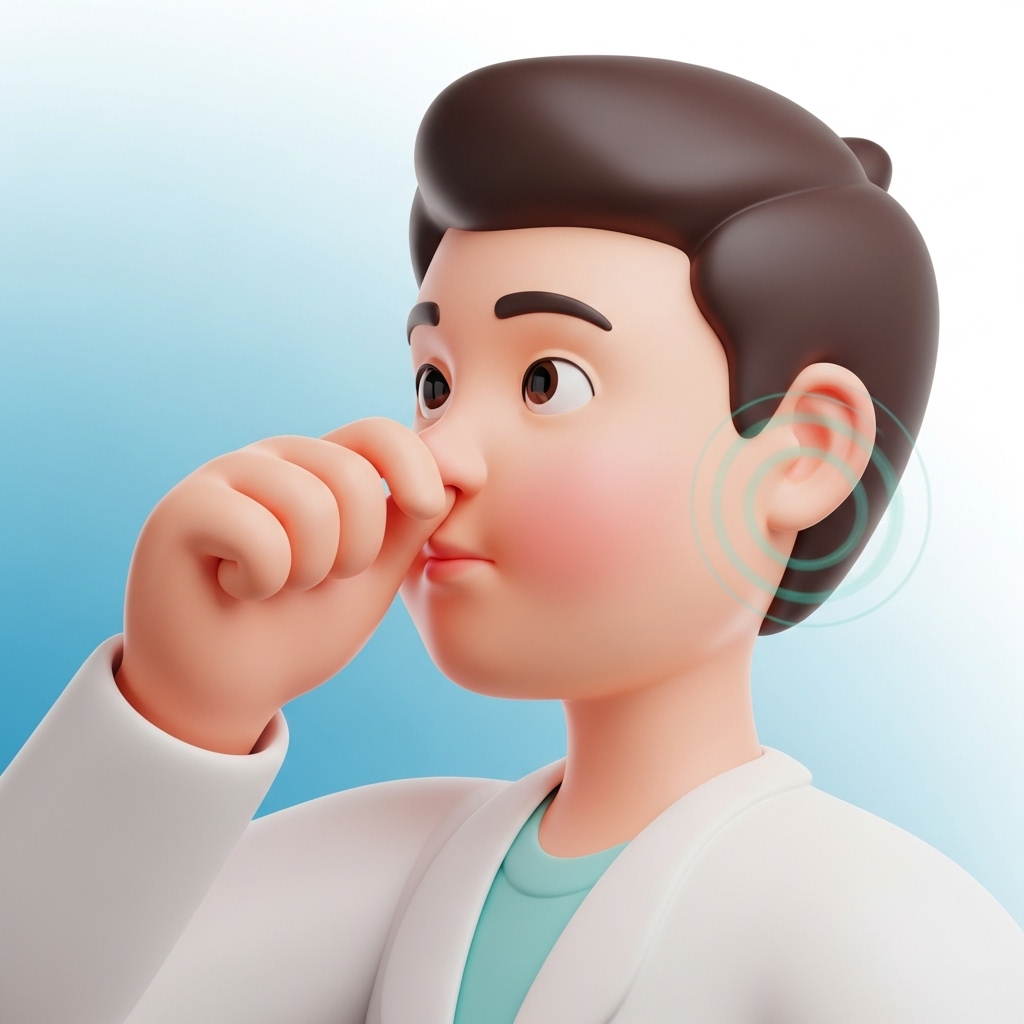 코를 막고 입을 다문 채 숨을 내쉬어 귀 안의 압력을 높이는 방법이에요. 압력 차이를 조절하는 데 아주 효과적인데, 너무 강하게 하면 오히려 귀에 무리가 갈 수 있으니 조심스럽게 시도해야 합니다. 비행기에서 귀가 먹먹할 때 많이 사용하죠.