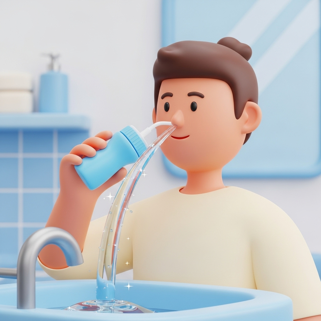 비염이나 축농증으로 인해 이관 기능에 문제가 생긴 경우, 생리식염수로 코 세척을 해주면 비강 내 염증을 줄이고 이관으로 가는 압력을 완화하는 데 도움을 줄 수 있습니다. 정기적으로 해주면 예방에도 좋답니다.