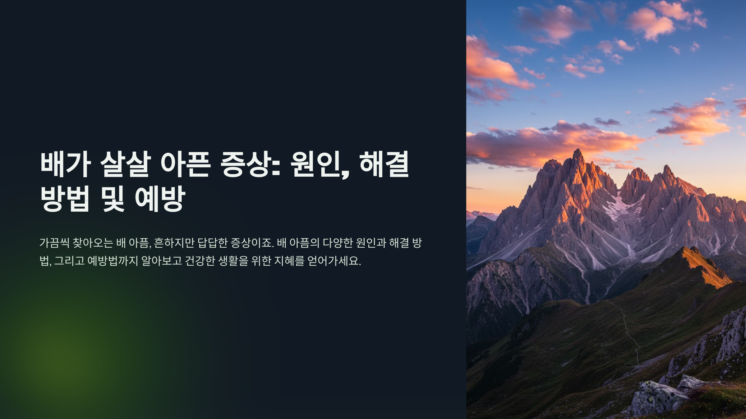 이 글에서는 **배가 살살 아픈 이유, 증상, 원인, 해결 방법**을 자세히 알려드릴게요! 😊