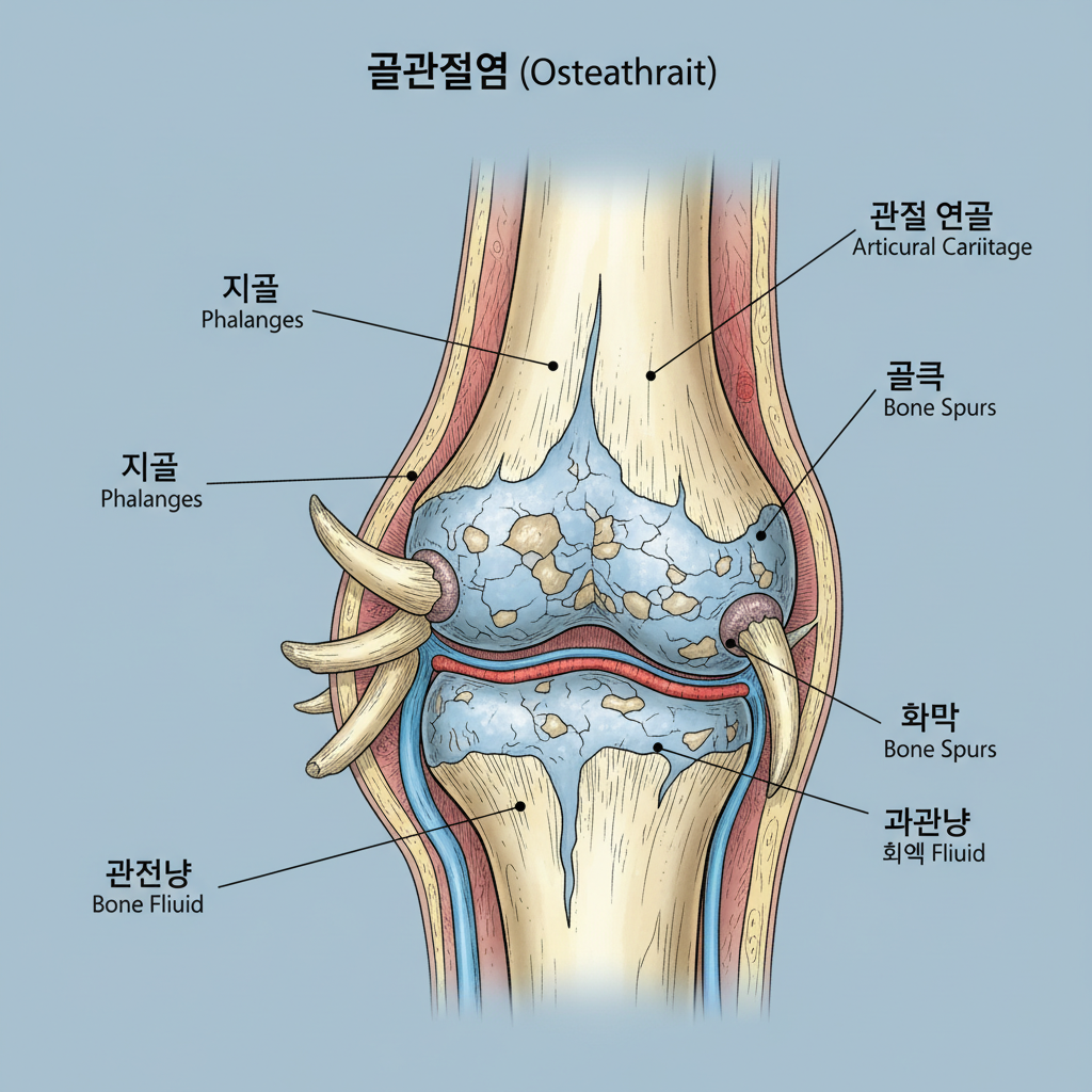 - 골관절염 (퇴행성 관절염): 주로 마디가 굵어지고 뼈가 튀어나오는 듯한 변형을 동반하며, 아침에 손가락이 뻣뻣하고 움직이기 힘들지만, 활동하면 통증이 점차 줄어드는 특징이 있어요. 특히 나이가 들수록 연골이 닳아 발생하기 쉬운데요, 요즘은 스마트폰 사용 등으로 젊은 층에서도 심심찮게 발견되곤 합니다.