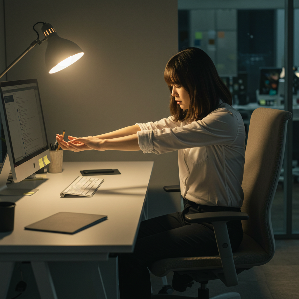 1시간에 한 번은 반드시 팔과 손목을 털고 스트레칭을 해주세요. 짧은 휴식이 손목 건강을 지켜주는 최고의 투자예요. 🧘♀️