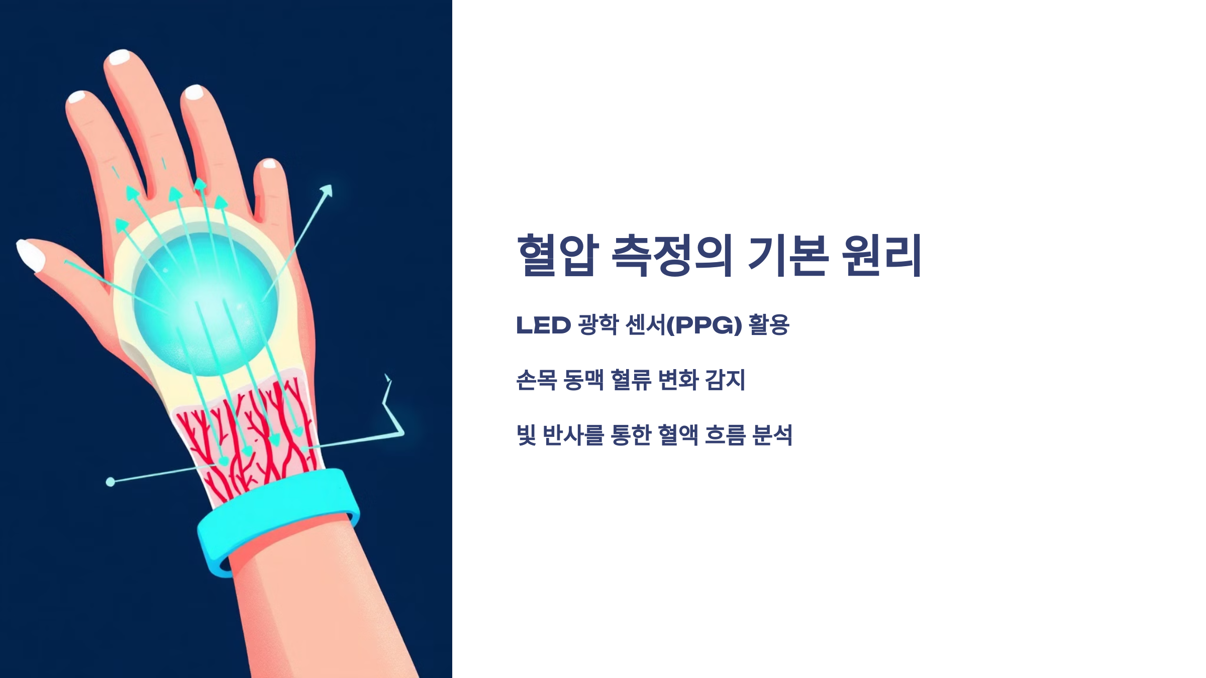 쉽게 말하면, 심장에서 뛰는 신호와 손목에서 감지되는 맥박 간의 시간차를 통해 혈압을 추정하는 거예요. 여기에 사용자의 체형, 피부 색, 모세혈관 특성까지 반영돼요.