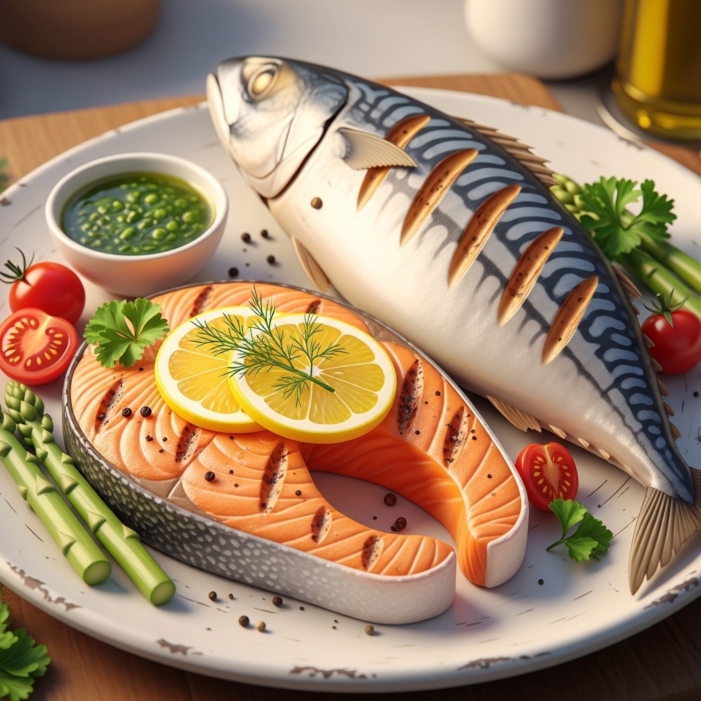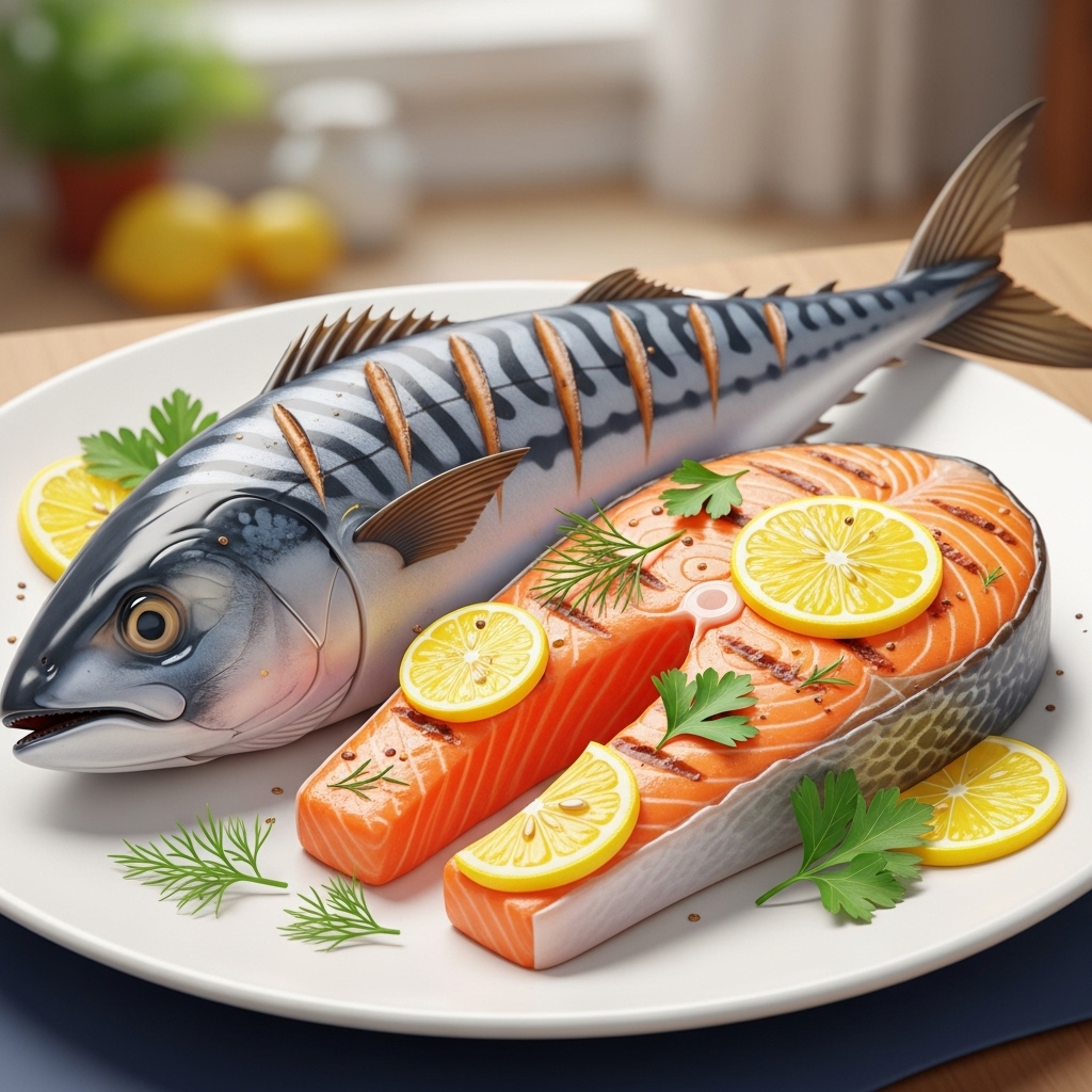 3. 등푸른생선 (고등어, 연어): 비타민 D와 오메가3