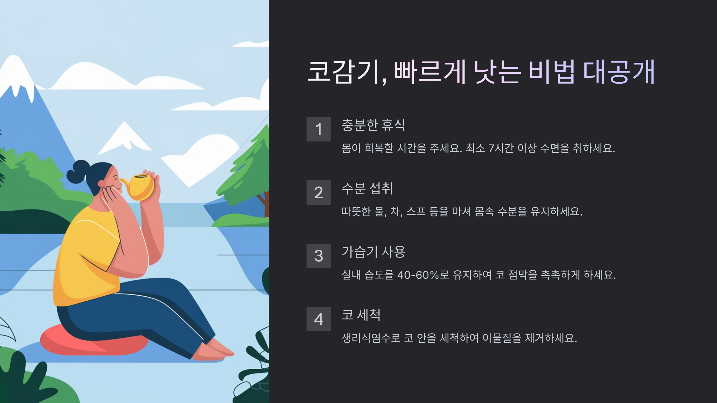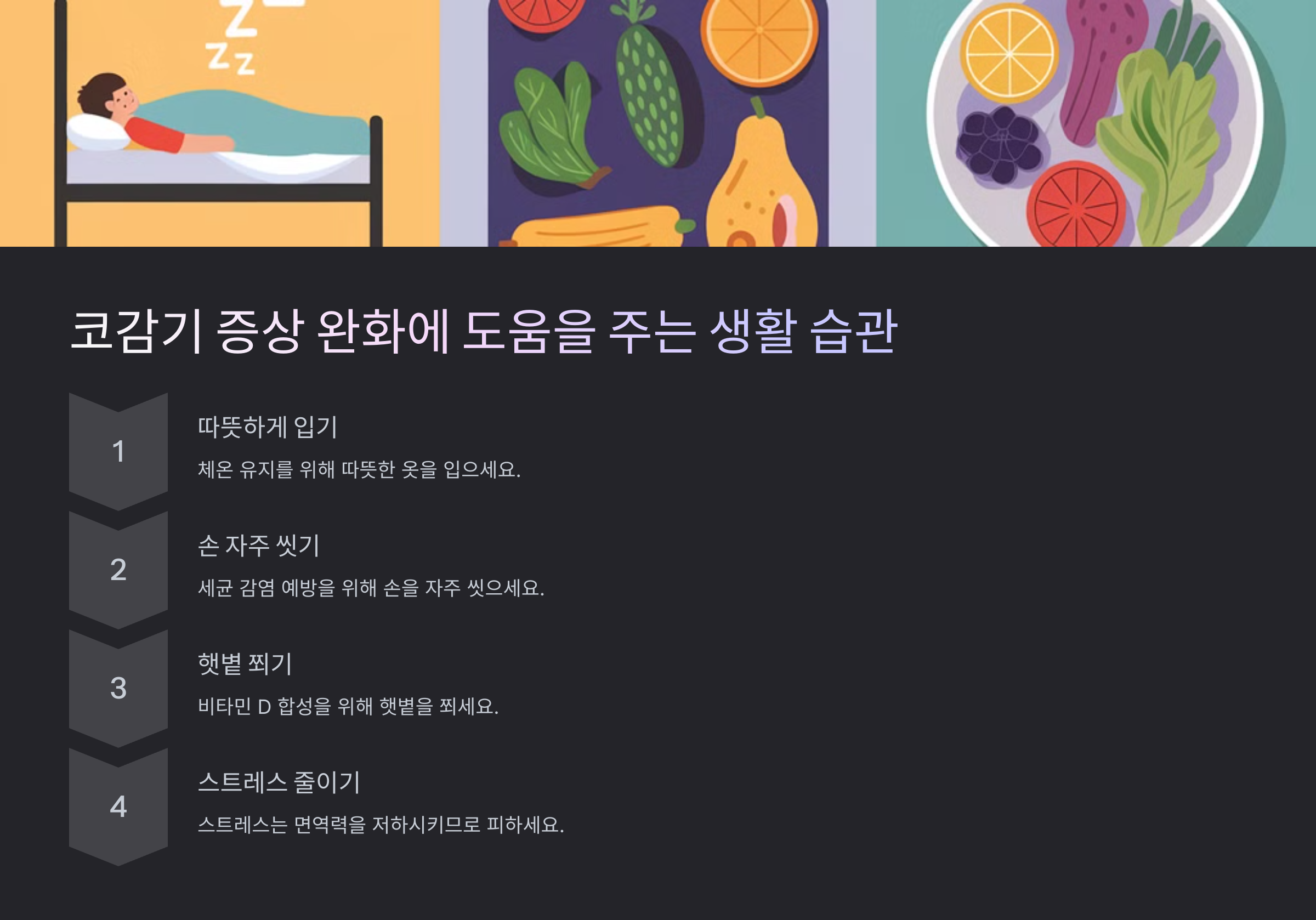 💡 코감기는 **면역력 관리와 증상 완화**에 집중하면 **빠르게 회복**할 수 있어요. 💧