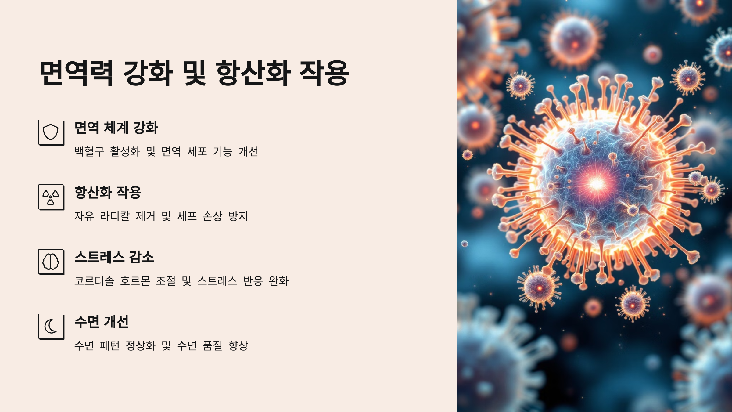 | 면역력 향상 | 감염 예방 및 신체 방어력 강화 |