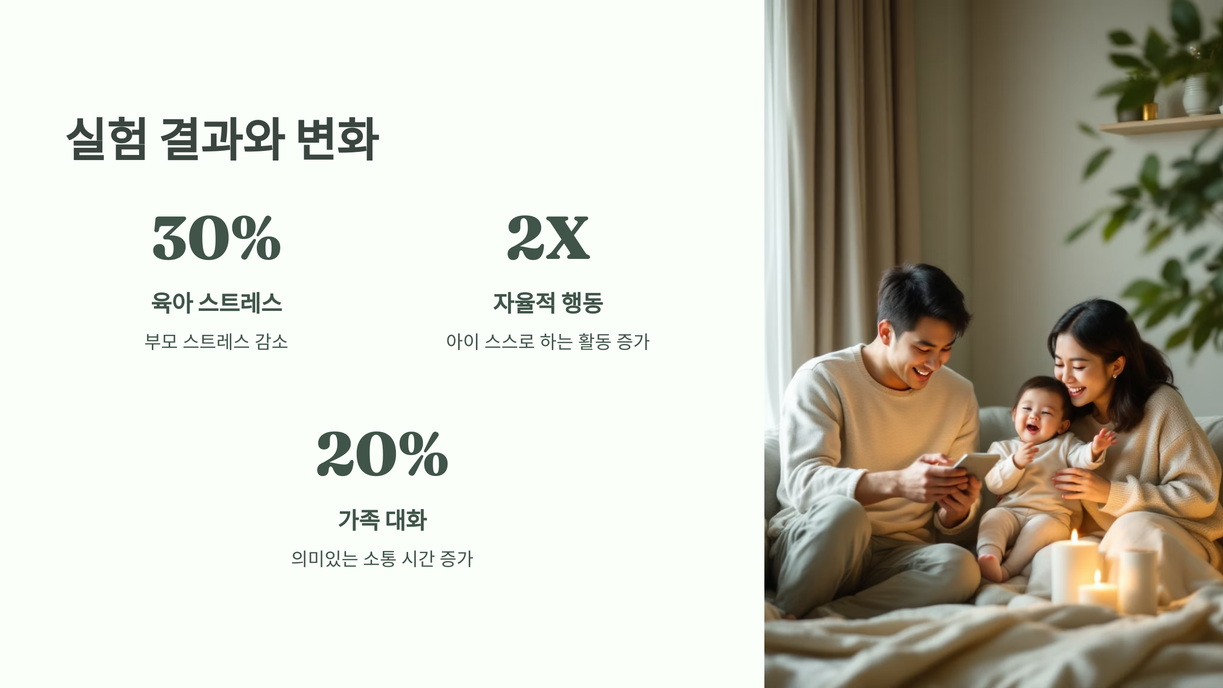 A1. 네! 수면 패턴 안정화, 부모 스트레스 감소, 일정 관리 효율 등 여러 면에서 긍정적인 변화를 경험했어요. 정말 추천할 만해요! 🧡