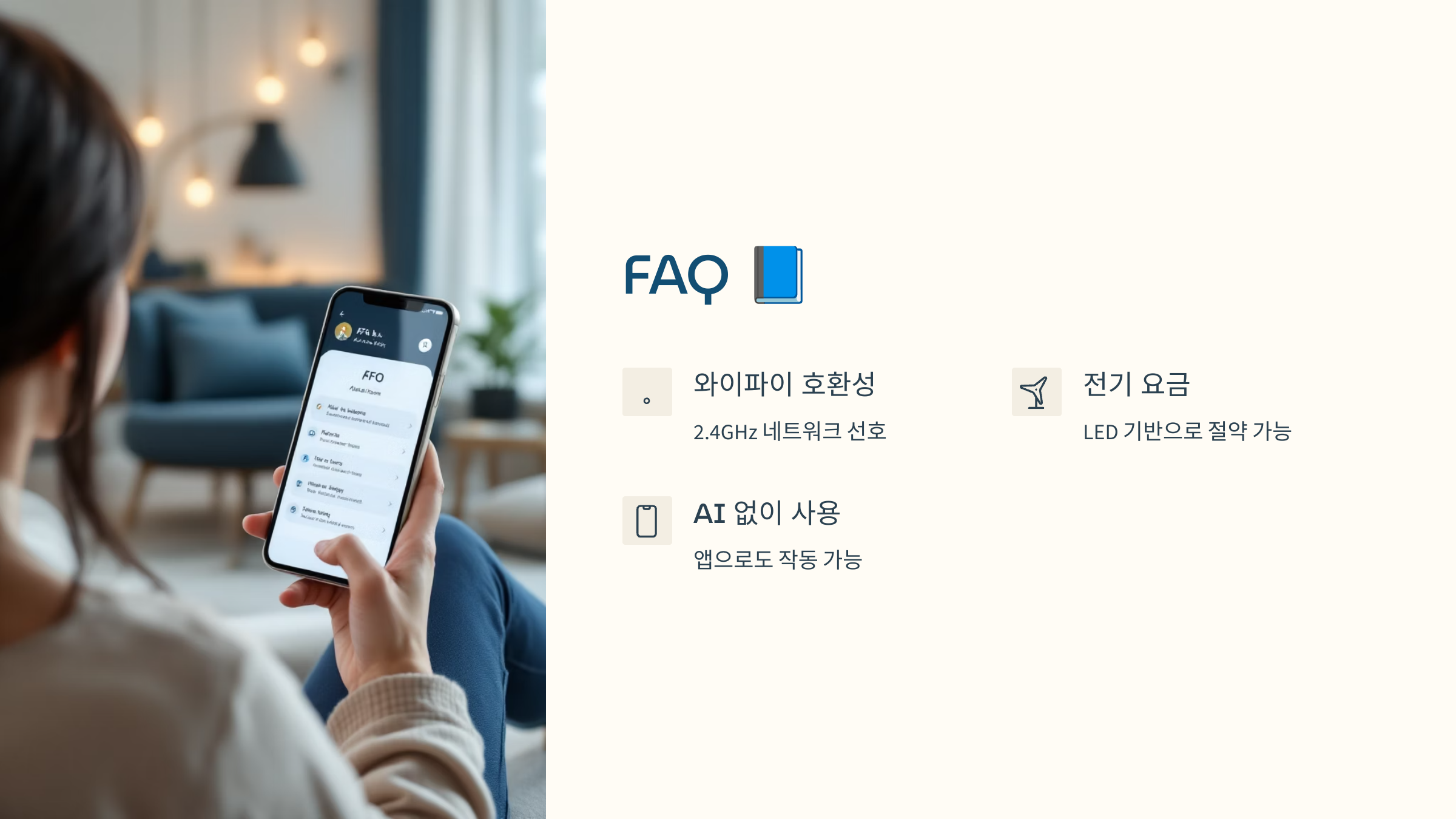A4. Wi-Fi 기반이라면 앱으로 언제 어디서든 조명을 제어할 수 있어요. 외출 시 조명 ON/OFF도 가능해요.