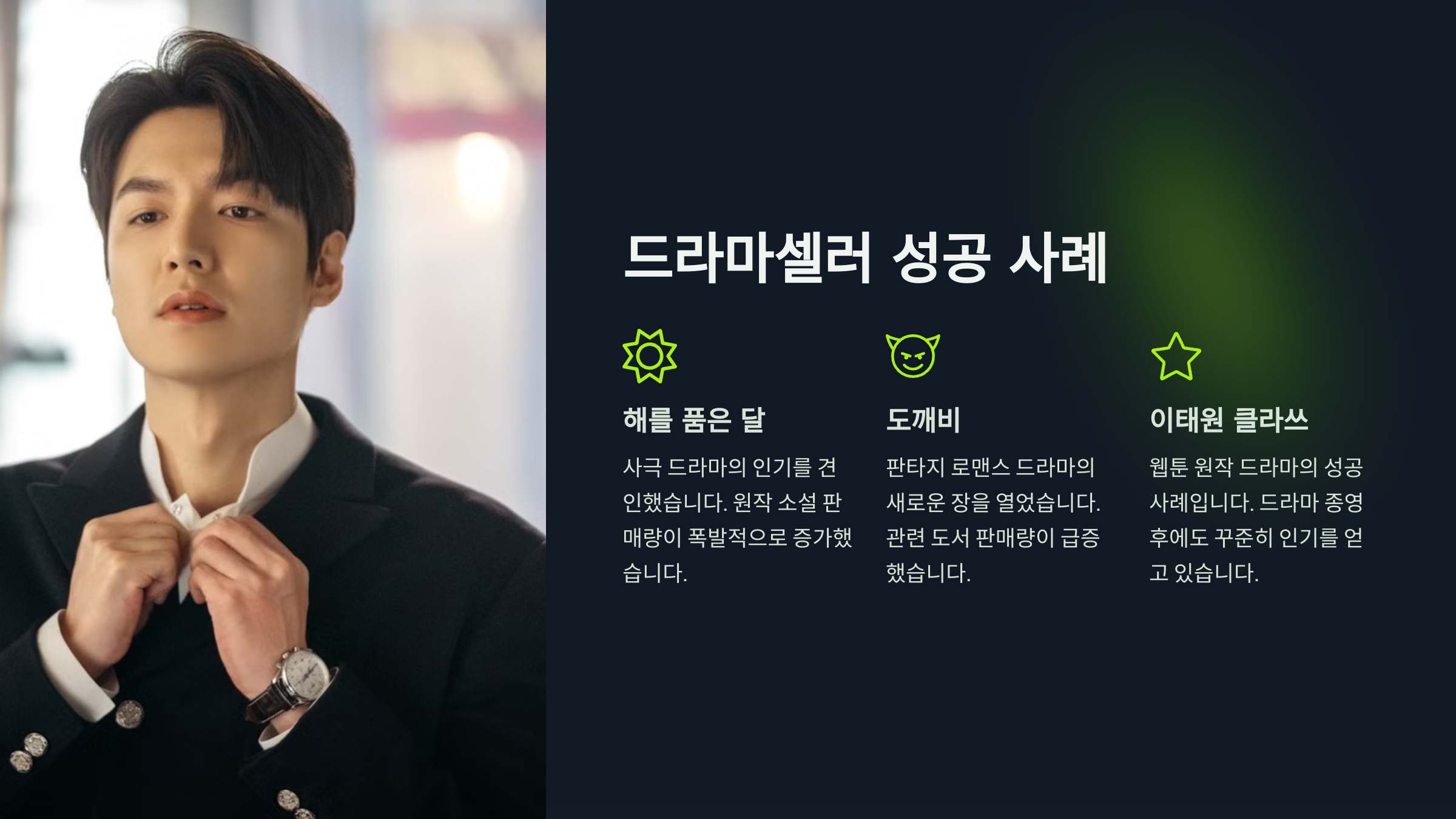 | 📖 웹소설·웹툰 원작 증가 | 드라마 ‘김비서가 왜 그럴까’, ‘재벌집 막내아들’처럼 웹소설 기반 작품이 많아졌어요. |