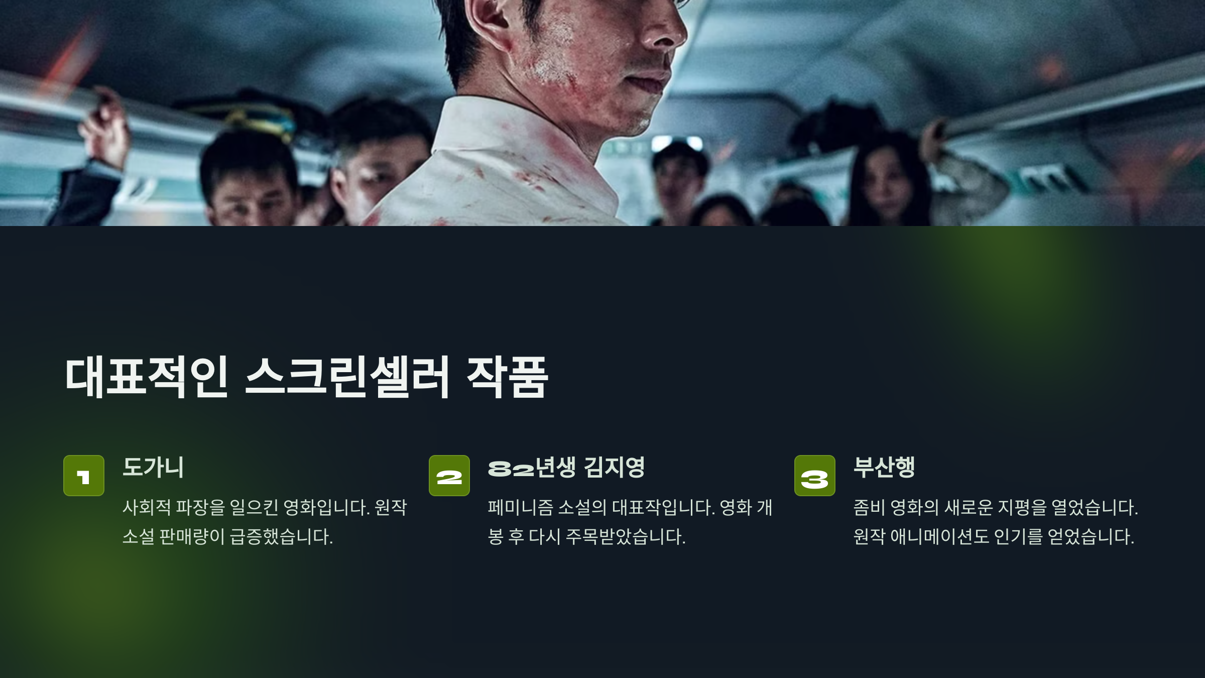 이제 대표적인 스크린셀러 작품들을 살펴볼까요? 🎬