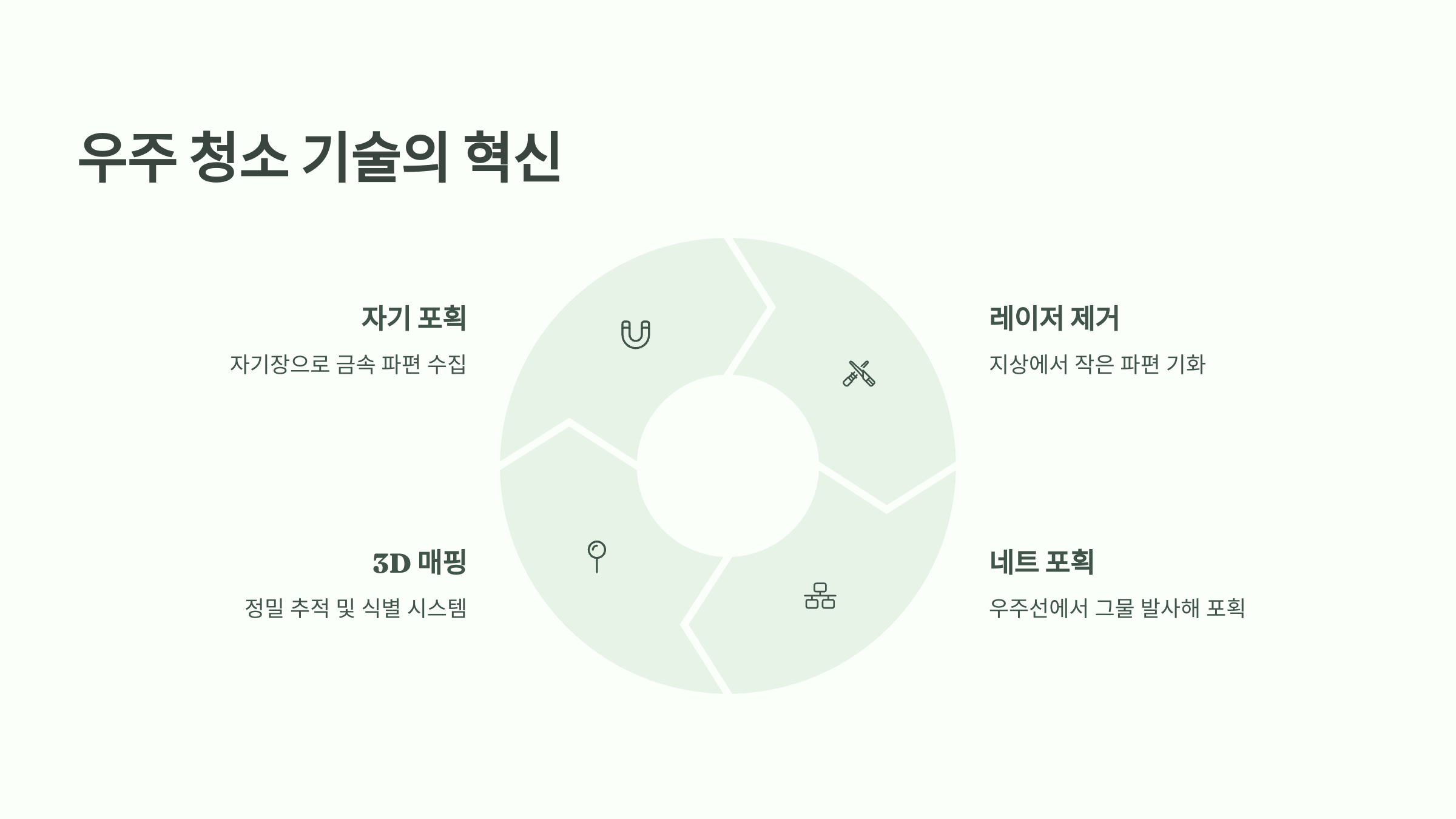 우주 쓰레기를 청소하기 위해 다양한 기술이 연구되고 있어요. 마치 영화 속 장면처럼 들리지만, 실제 개발 중이거나 실험된 기술들이랍니다. 각 기술은 장단점이 분명해서 목적에 따라 선택이 달라져요.